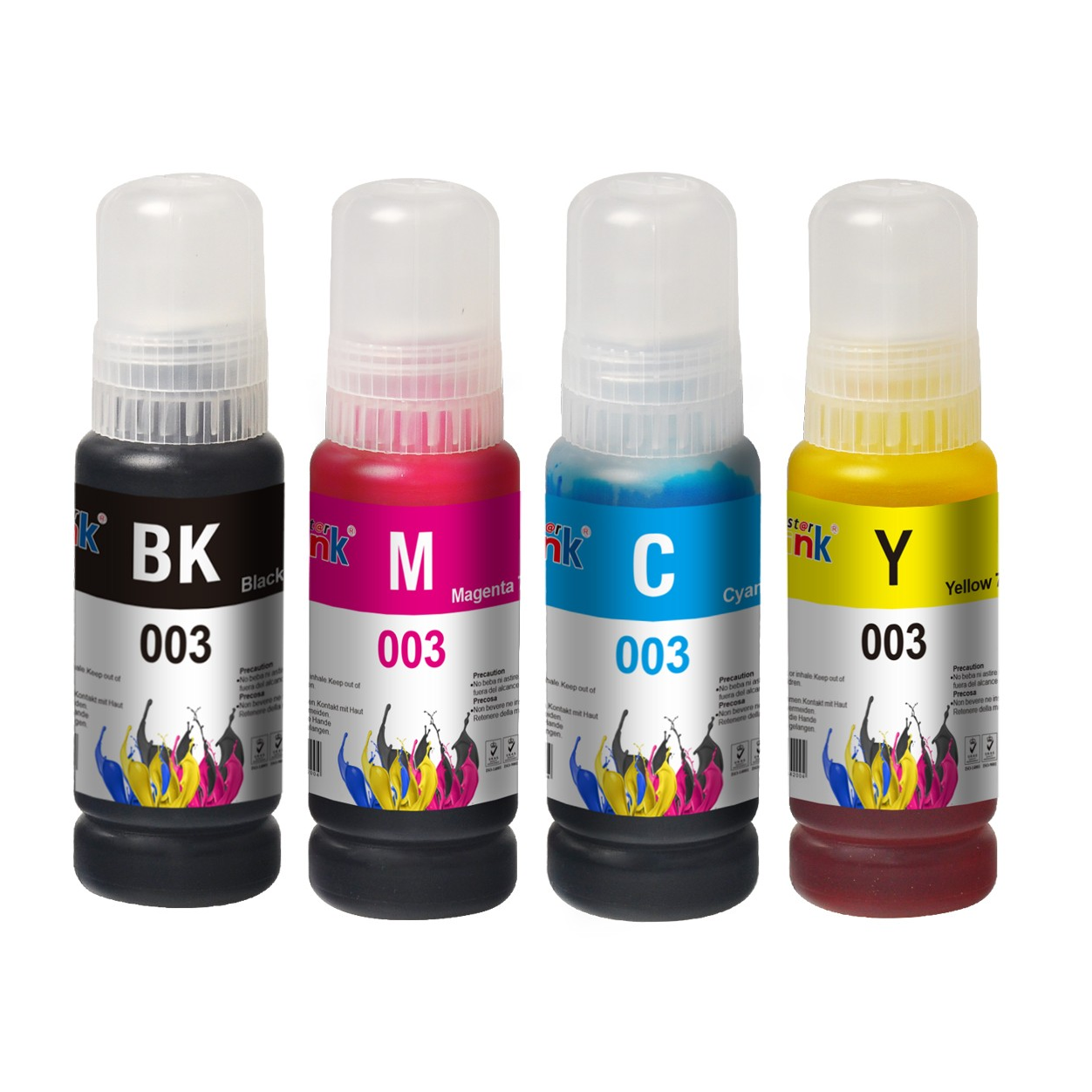 Refil de Tinta compatível com Epson T504, T544, T544120, T544122 para utilização nos seguintes equipamentos: EcoTank L-3150, L3150, L-3110, L3110, L-5190, L5190, L-3250, L3250, L-3210, L3210, L-5290, L5290, L-5590, L5590. Kit com 4 cores. Marca: Star Ink, a mais vendida na américa latina.