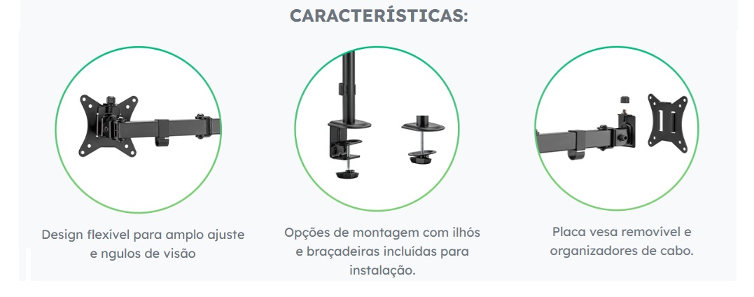 Braços giratórios: oferecem máxima flexibilidade de visualização;