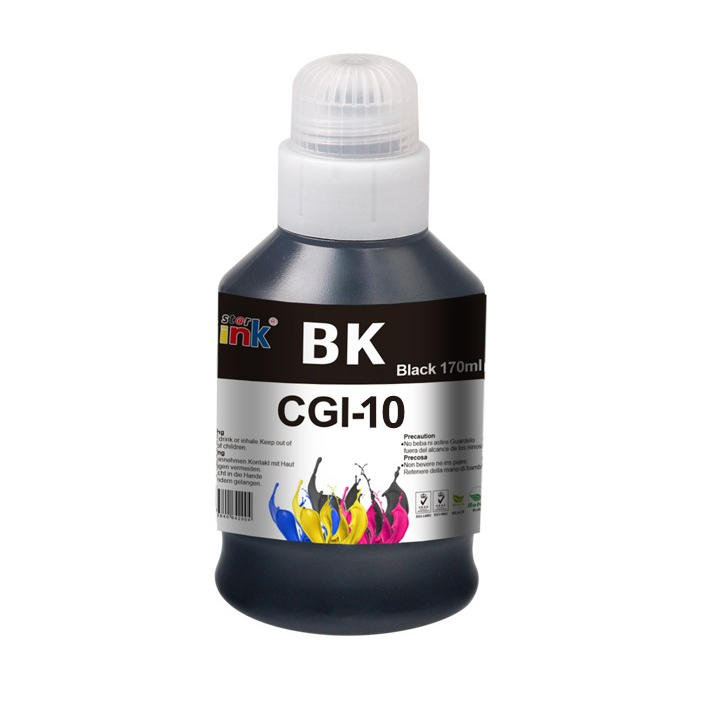 Refil de Tinta com 140ml na cor preta (BK) compatível com Canon GI-10, GI10 para utilização nos seguintes equipamentos: Mega Tank G-6010, G6010, G-7010, G7010, GM-2010, GM2010, GM-4010, GM4010. Marca: Star Ink, a mais vendida na américa latina.